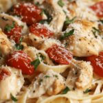 A creamy and flavorful pasta dish featuring tender chicken, sun-dried tomatoes, and parmesan, perfect for impressing guests or treating yourself.