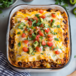 A delicious twist on the classic Italian dish, this Mexican lasagna is layered with tortillas, seasoned meat, beans, cheese, and salsa, creating a hearty meal that blends vibrant flavors from both cuisines.